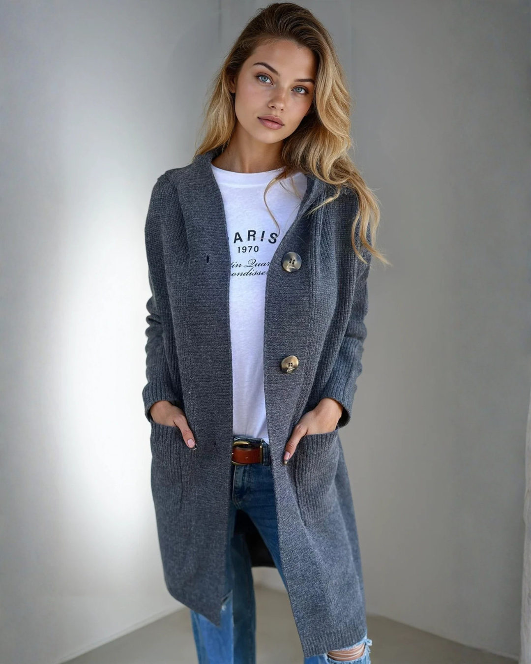 Abrigo de punto largo y acogedor para mujer