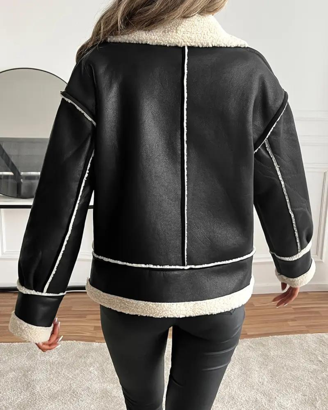 Chaqueta Elegante de Cuero Forrado de Felpa para Mujer
