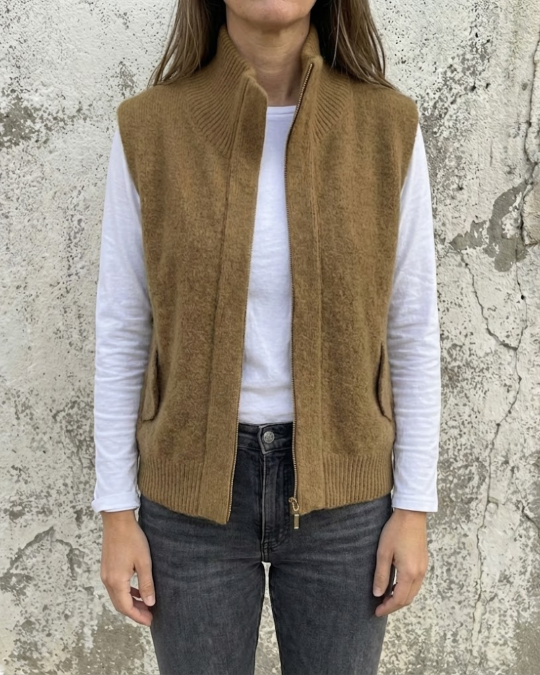 Gracias a su naturaleza sin mangas es el compañero perfecto para la primavera y el otoño brindando la calidez justa En los meses más fríos se convierte en un aliado estratégico para el uso de capas debajo de chaquetas o abrigos ofreciendo una solución de estilo funcional que transita perfectamente entre las estaciones